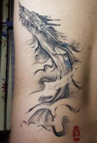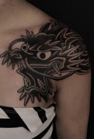 肩膀简约刺青 女生肩部黑色的龙纹身图案