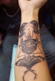 手臂刺青素材 男生手臂上羊头和骷髅纹身图案