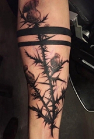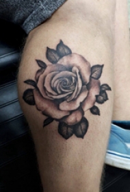 欧美小腿刺青 男生小腿上黑色的玫瑰纹身图案