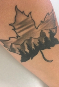 欧美小腿刺青 男生小腿上风景和枫叶纹身图案
