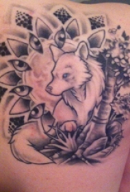 刺青后背女 女生后背上黑色的狐狸纹身图案