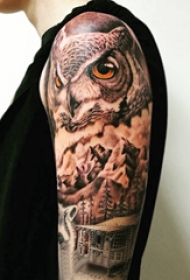 刺青猫头鹰 男生手臂上猫头鹰纹身图案
