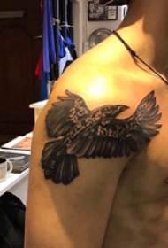 手臂刺青素材 男生手臂上黑色的乌鸦纹身图案