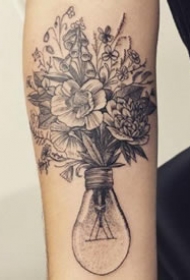 花朵在灯泡和瓶子里--黑色创意点刺花朵刺青图案作品图片