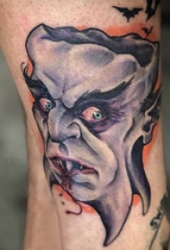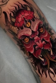 恶魔刺青简单 男生小腿上彩色的恶魔纹身图案