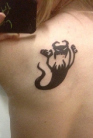 恶魔刺青简单 女生后背上黑色的恶魔纹身图案
