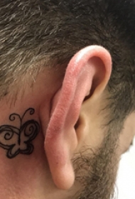 刺青耳后男 男生耳后黑色的蝴蝶纹身图案