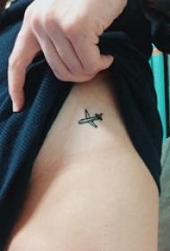 飞机刺青 女生侧腰上黑色的飞机纹身图案