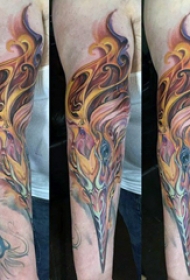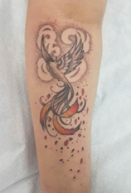手臂刺青素材 男生手臂上浴火重生的凤凰纹身图案