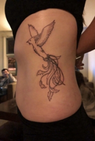 刺青火凤凰 女生侧腰上极简的凤凰纹身图案