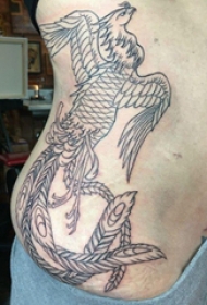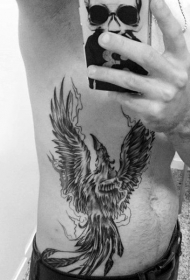 侧腰刺青女 女生侧腰上黑色的凤凰纹身图案