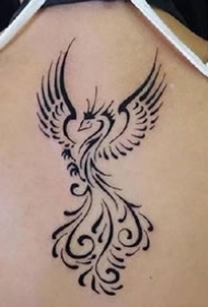 几何动物刺青 男生后背上黑色的凤凰纹身图案