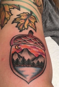 双大臂刺青 男生大臂上彩色的山水风景纹身图案