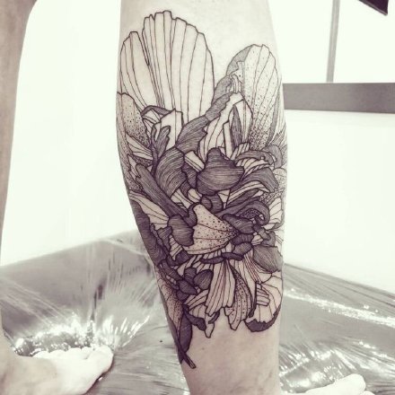 花卉线条纹身作品欣赏 线绘花朵刺青纹身
