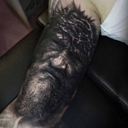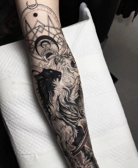 猛男大臂黑色纹身 猛兽主题大臂纹身