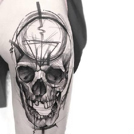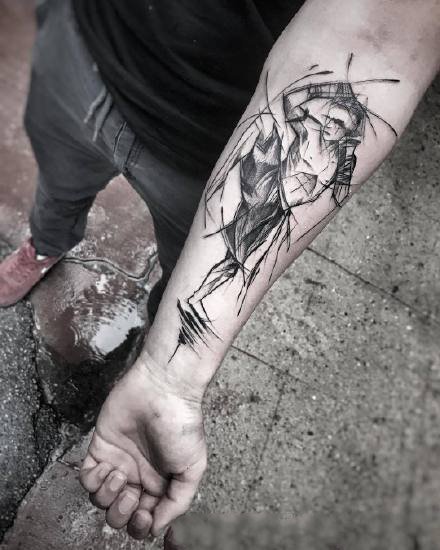 超帅的黑色手绘纹身图案 潦草风格纹身图片