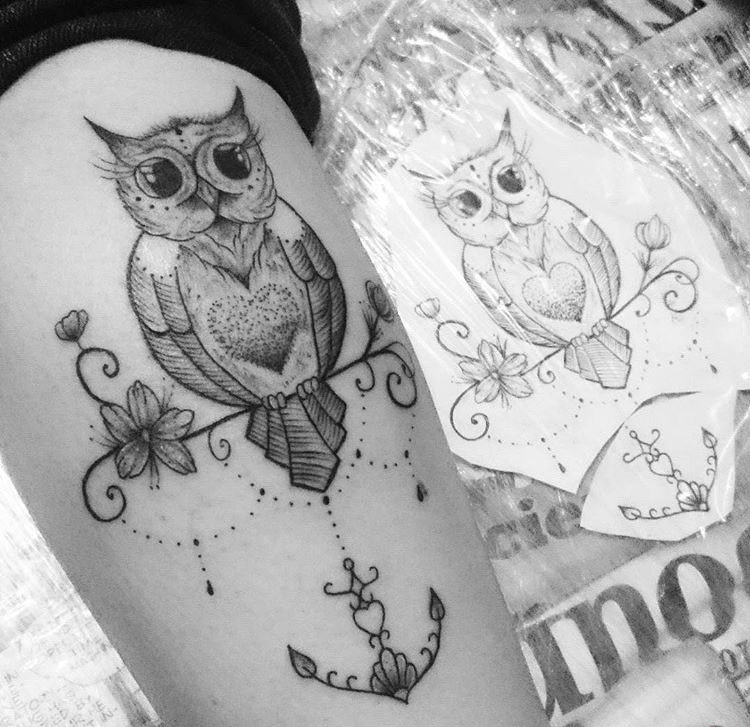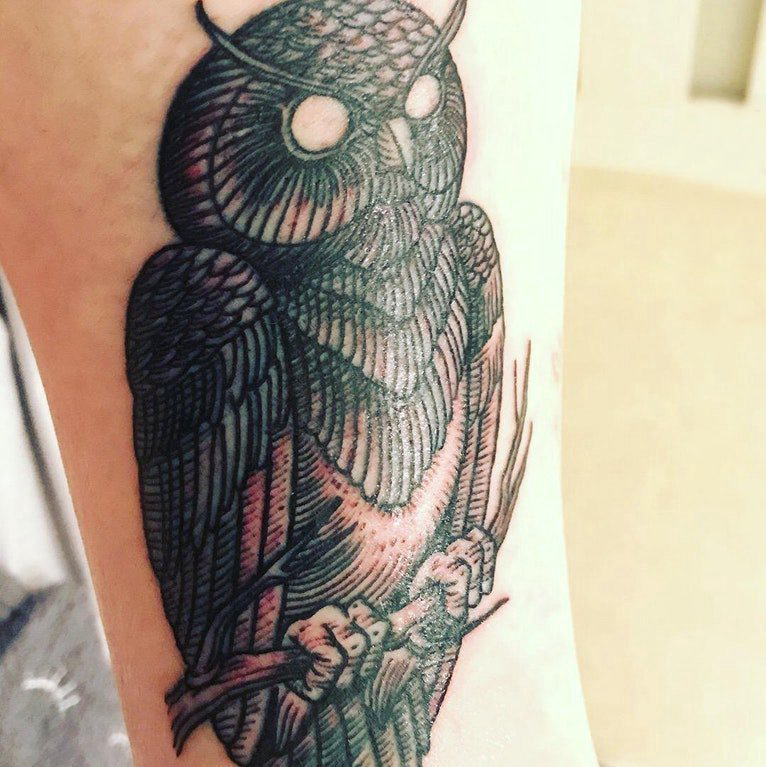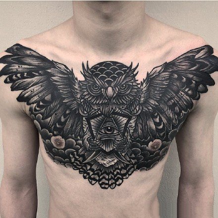 黑灰色猫头鹰刺青 猫头鹰纹身大全