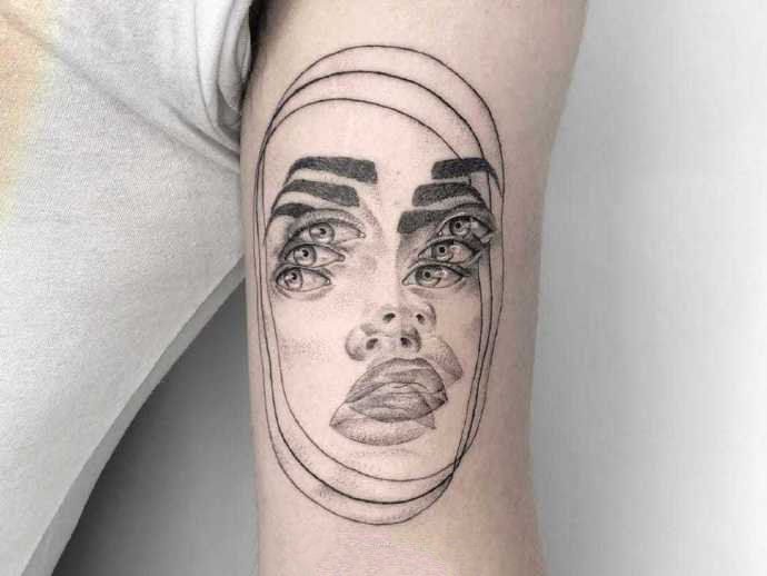 黑色线绘重影纹身图案 线绘刺青纹身大全