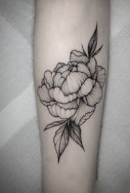 纹在手臂胳膊上的黑灰素花花卉刺青图案欣赏图片