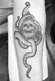 暗黑灰色调的一组点刺风格刺青图案作品9张图片