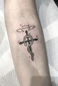 纹在小手臂上好看的几何线条黑灰刺青图案9张图片