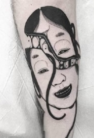 黑灰插画风格的艺伎女郎刺青作品图案图片
