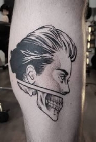 黑灰色半人脸半骷髅的一组个性半脸刺青图案9张图片