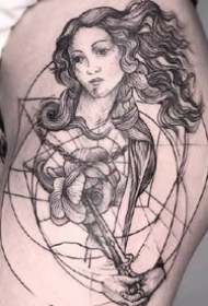 大臂和大腿精致的一组点刺线条刺青图案欣赏图片