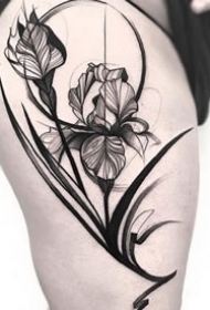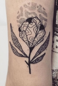 手臂和大腿上适合的大幅点刺黑灰花卉刺青图案欣赏图片