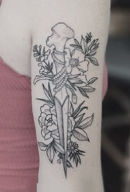 男性大手臂上的一组个性黑灰刺青作品图案图片