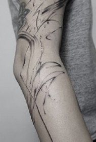 线条刺青图案-线条黑灰的水墨纹身图案