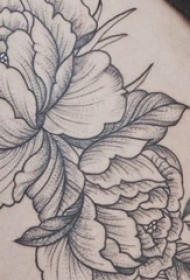 花卉刺青图案 女生大腿上黑灰色的花卉纹身图案