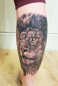 狮子头刺青欧美 男生手腕上黑灰的狮子头纹身图案