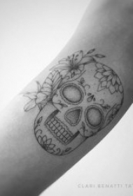 胳膊上很漂亮的点刺小黑灰刺青图案