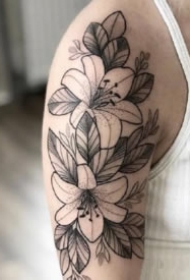 水墨植物图片 水墨风格的一组黑灰植物纹身图案