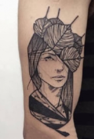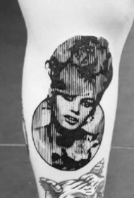 点刺刺青色 9组黑灰色的人物肖像纹身图案