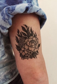 花卉刺青图案 女生手臂上黑灰的花卉纹身图案