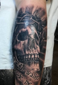 骷髅和英文刺青图案 男生手臂上骷髅和英文纹身图案