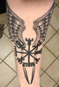 天使翅膀刺青素材 男生小腿上黑灰的翅膀纹身图案