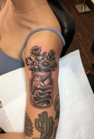 手臂刺青女花 女生手臂上花朵和浪花纹身图案