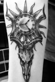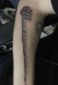 骷髅刺青 女生手臂上黑灰的骷髅纹身图案