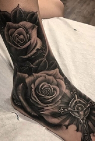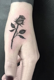 手背刺青 女生手背上黑灰的玫瑰纹身图案