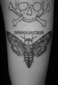 骷髅和蝴蝶刺青图案 女生腿上骷髅和蝴蝶纹身图案