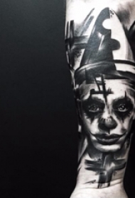 素描刺青 男生手臂上素描的黑灰人物和动物纹身图案