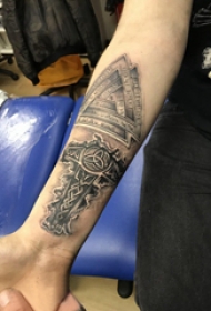 刺青点刺技巧 男生手臂上黑灰纹身图案