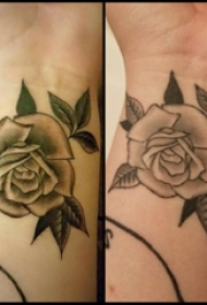 刺青 小玫瑰 女生手腕上欧美玫瑰纹身图案