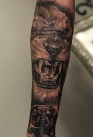 狮子头刺青欧美 男生手臂上狮子头纹身图案