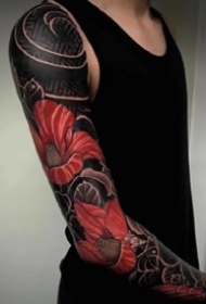 黑色调的点刺风格的繁花图腾刺青图案9张图片