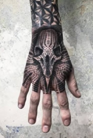超黑元素的一组国外刺青师手部黑色刺青作品图案欣赏图片
