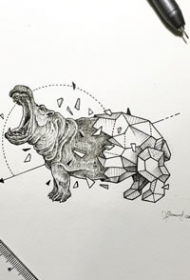 纹身吧河马手稿图案大全图片